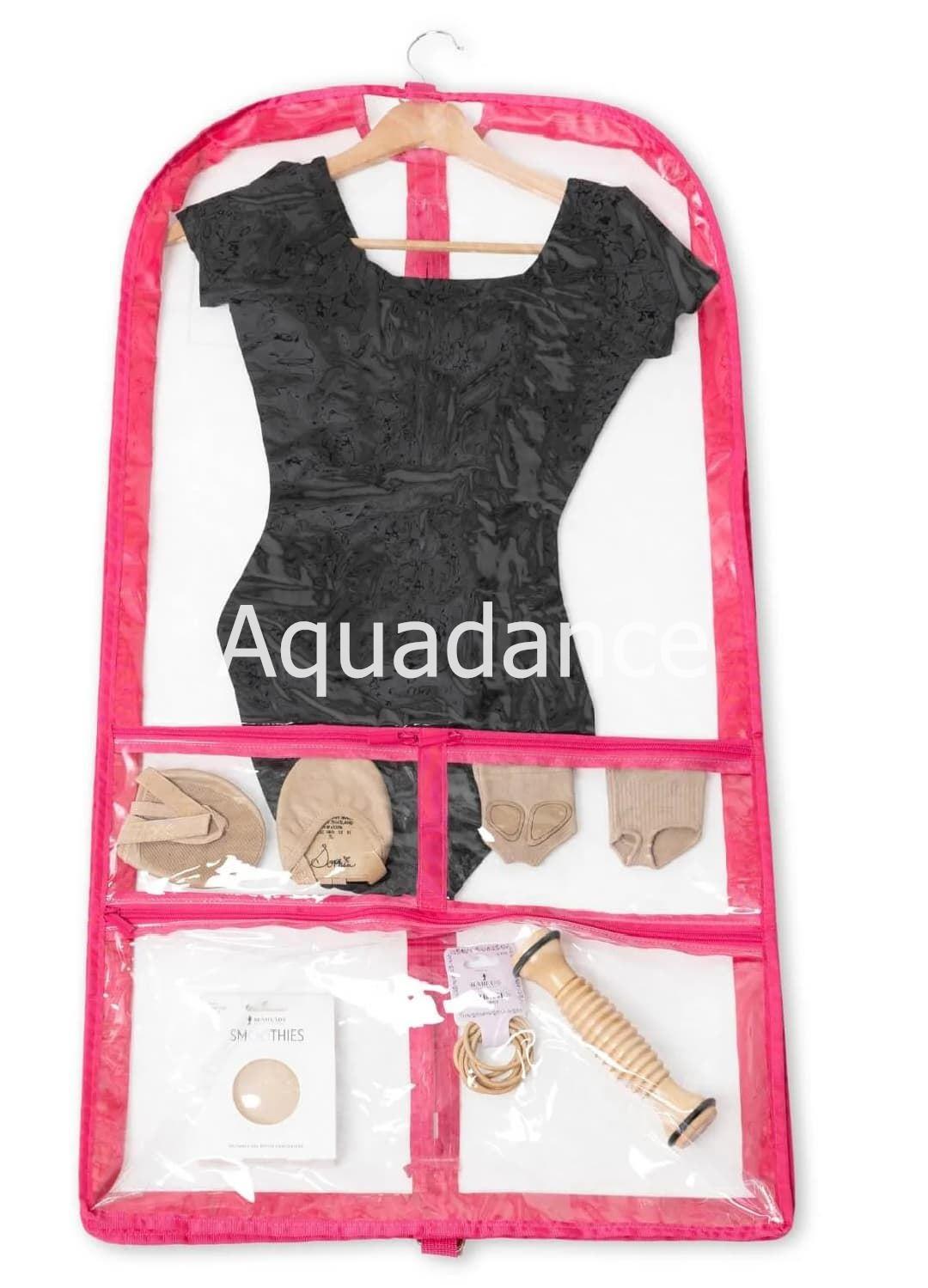 La bolsa de ropa On The Go es un artículo imprescindible para los bailarines que siempre están en movimiento. Hecha de 100% PVC y 100% Nylon, esta bolsa de ropa es duradera y de larga duración. El diseño claro en la parte delantera y trasera con ribete de color te permite identificar fácilmente tu vestuario y disfraces, mientras que el cierre de cremallera completo asegura que tus prendas se mantengan en su lugar. El fuelle expandible de 3" proporciona espacio adicional para artículos más voluminosos, y los 3 bolsillos exteriores ofrecen almacenamiento conveniente para accesorios y zapatos. Ya sea que estés viajando a una competencia o simplemente necesites transportar tu vestuario entre clases, la bolsa de ropa On The Go Dance te tiene cubierto.